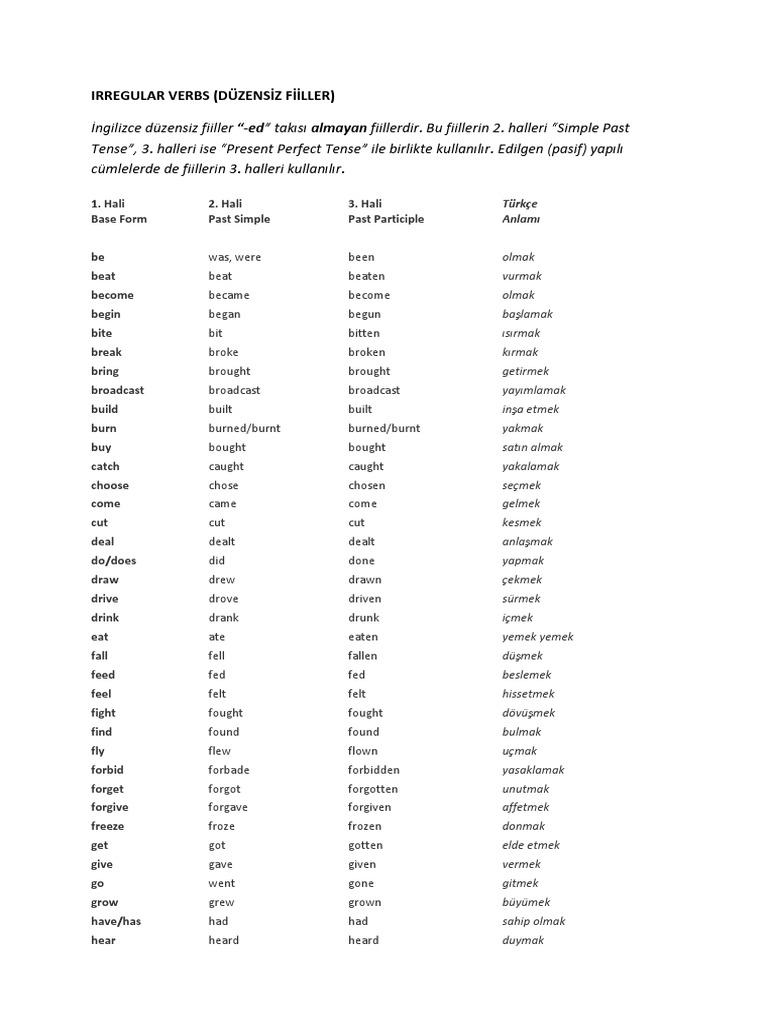 ingilizce fiillerin 2 ve 3 halleri pdf.